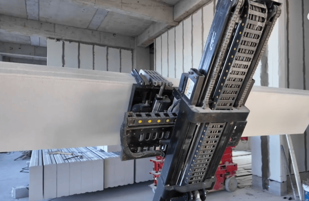 这位“智能工友”通过无线寸工业平板和智能软件,能够从动完成板材的分手和取放,四舵轮布局实现零转弯半径,人机协同效率提拔近三倍,为6038项目内部拆修功课建牢根本。同时,机械人零排放、帮力实现“人少化、智能化、绿色化”施工方针。